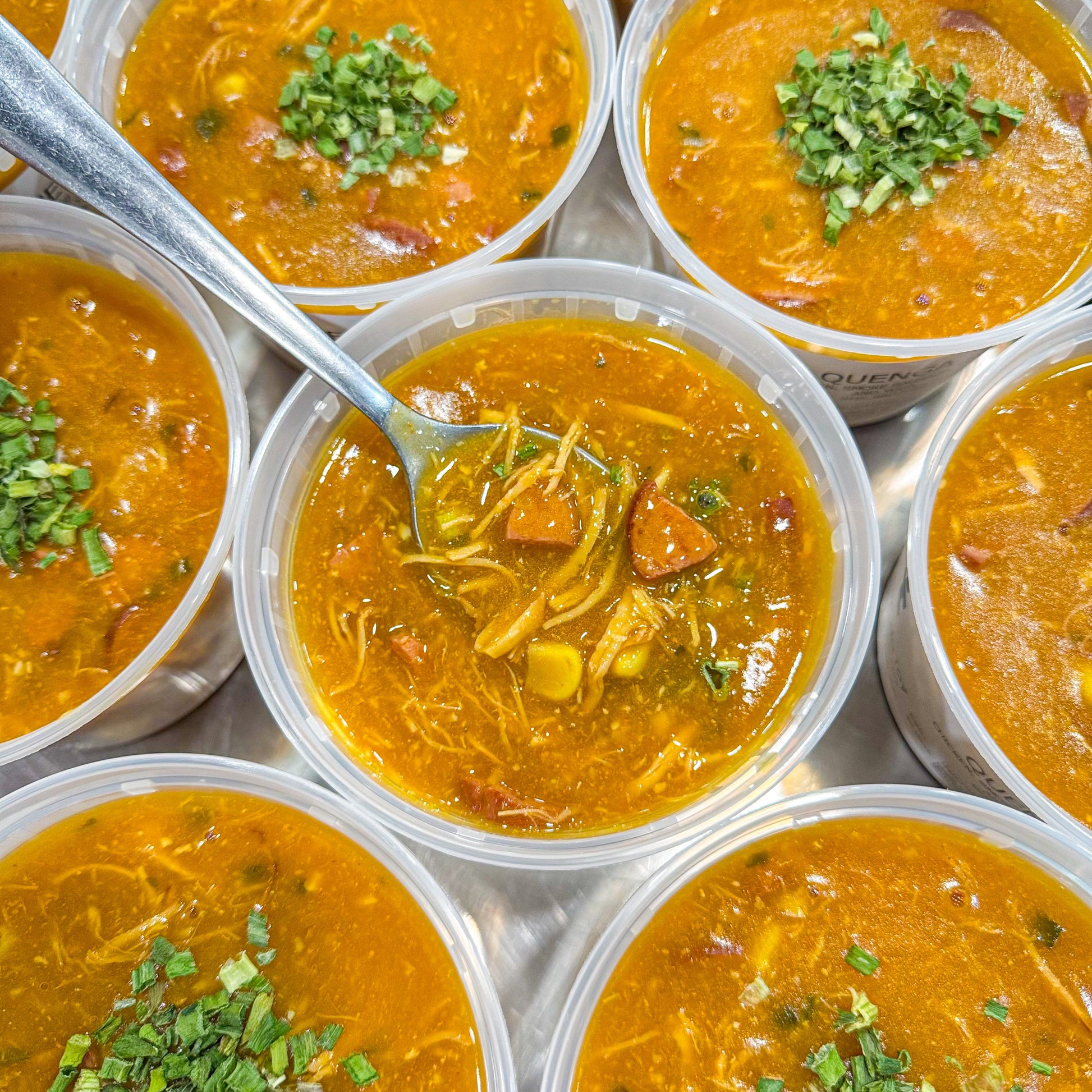 Ingredientes: Mandioca, frango desfiado, calabresa e milho.